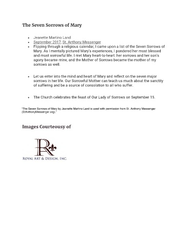 “The Seven Sorrows of Mary by Jeanette Martino Land is used with permission from St. Anthony Messenger