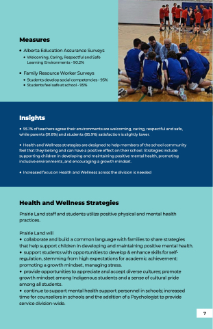 continue to support mental health support personnel in schools; increased time for counsellors in schools and the addition of a Psychologist to provide service division-wide.