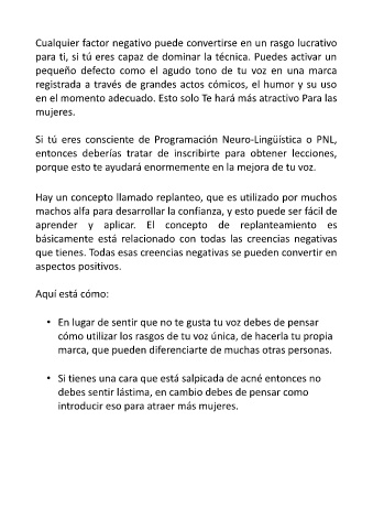 pequeño defecto como el agudo tono de tu voz en una marca