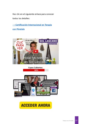 Haz clic en el siguiente enlace para conocer todos los detalles: → Certificación Internacional en Terapia con Péndulo Cupos Cubiertos: Terapia con Péndulo 17