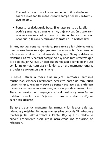Siempre tratar de mantener las manos y los brazos abiertos,