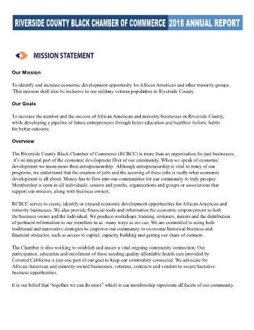 RIVERSIDE COUNTY BLACK CHAMBER OF COMMMERCE 2018 ANNUAL REPORT