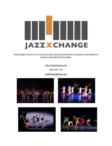 JazzXchange’s mission is to use the principles of jazz performance to empower communities to embrace and celebrate innovation. https://jazzxchange.org/ (949) 385-1730 jazzXchange@gmail.com