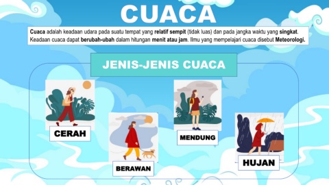 Keadaan cuaca dapat berubah-ubah dalam hitungan menit atau jam. Ilmu yang mempelajari cuaca disebut Meteorologi.
