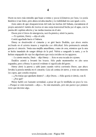 —¿No tenías que quedarte dentro? —dijo Owen. —Sólo quería ir detrás, con él.