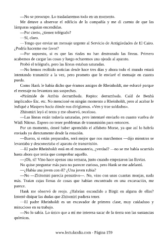 —Tengo que enviar un mensaje urgente al Servicio de Antigüedades de El Cairo.