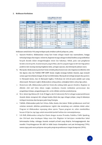 e. Tahfizh; dilaksanakan pada hari Selasa, Rabu, Kamis, dan Jumat. Waktu pelaksanaan awal hari