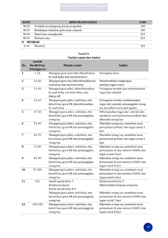 12 102-125 Ditangani guru piket, wali kelas, tim Diketahui orang tua, membuat surat