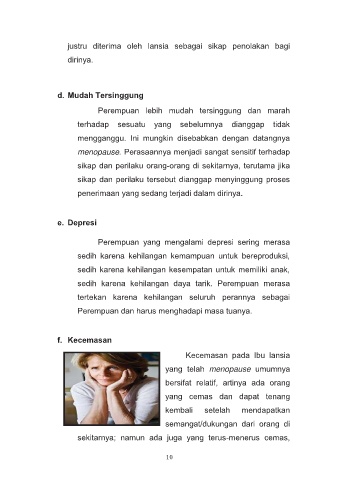 menopause. Perasaannya menjadi sangat sensitif terhadap