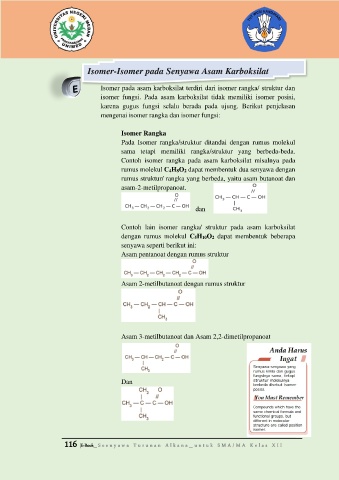 Isomer pada asam karboksilat terdiri dari isomer rangka/ struktur dan