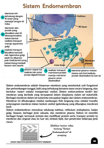 Sistem endomembran mencakup selubung nukleus, retikulum endoplasma, badan