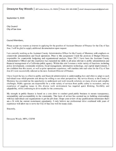 Please accept my resume as interest in applying for the position of Assistant Director of Finance for the City of San