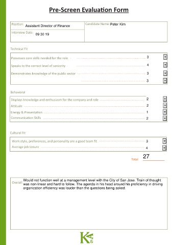 Overall: Would not function well at a management level with the City of San Jose. Train of thought