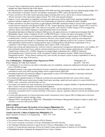 Major: Master of Government (Public) Administration / Public Finance Certificate GPA: 3.3 / 4.00