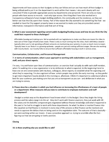 6. What is your assessment regarding current public budgeting/funding issues and how do you think the City