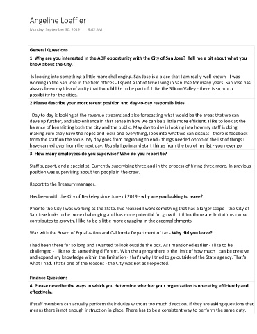1. Why are you interested in the ADF opportunity with the City of San Jose? Tell me a bit about what you
