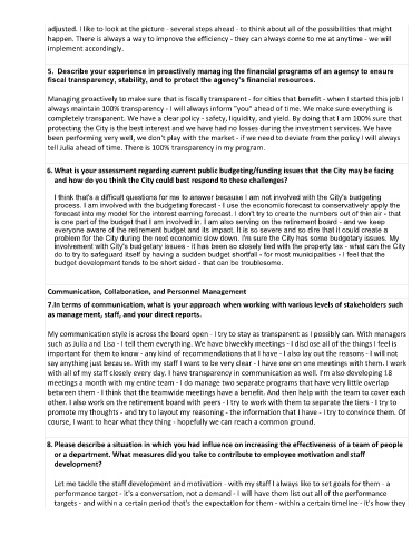 6. What is your assessment regarding current public budgeting/funding issues that the City may be facing