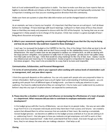6. What is your assessment regarding current public budgeting/funding issues that the City may be facing