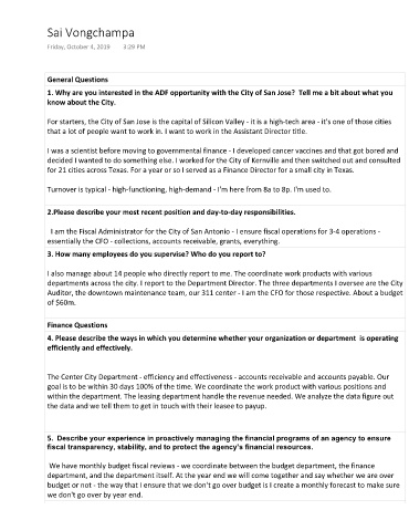 1. Why are you interested in the ADF opportunity with the City of San Jose? Tell me a bit about what you