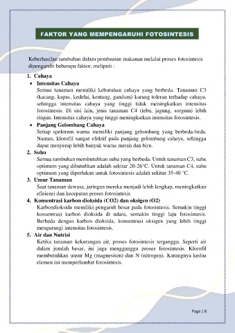 ringan. Intensitas cahaya yang tinggi meningkatkan intensitas fotosintesis.