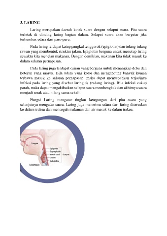 Pada laring terdapat katup pangkal tenggorok (epiglottis) dan tulang-tulang