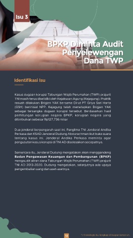 mengaudit aliran dana Tabungan Wajib Perumahan (TWP) prajurit