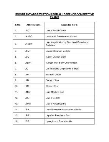 IMPORTANT ABBREVIATIONS FOR ALL DEFENCE COMPETITIVE