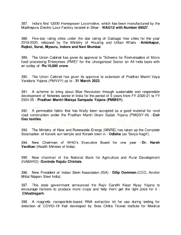 390. The Union Cabinet has given its approval to extension of Pradhan Mantri Vaya