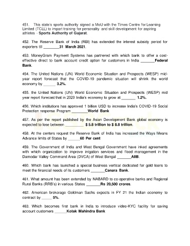 452. The Reserve Bank of India (RBI) has extended the interest subsidy period for