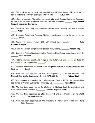 469. Name the veteran Bengali author passed away recently _______ Debesh Roy.