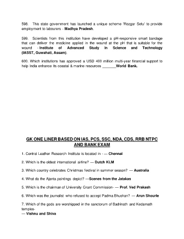 GK ONE LINER BASED ON IAS, PCS, SSC, NDA, CDS, RRB NTPC