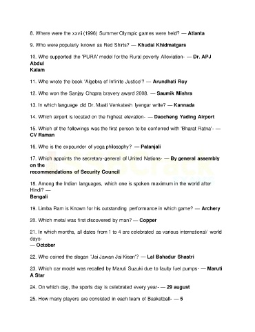 8. Where were the xxvii (1996) Summer Olympic games were held? — Atlanta