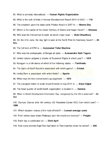 87. Which is the capital of the Union Territory of Dadra and Nagar Haveli? — Silvassa