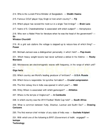214. Who is the current Prime Minister of Bangladesh- — Sheikh Hasina