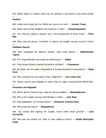 450. Who was the earliest Sufi Saint to have settled at Ajmer? — Sheikh Moinuddin