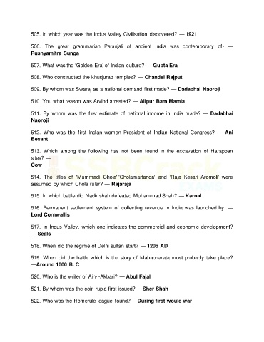 505. In which year was the Indus Valley Civilisation discovered? — 1921