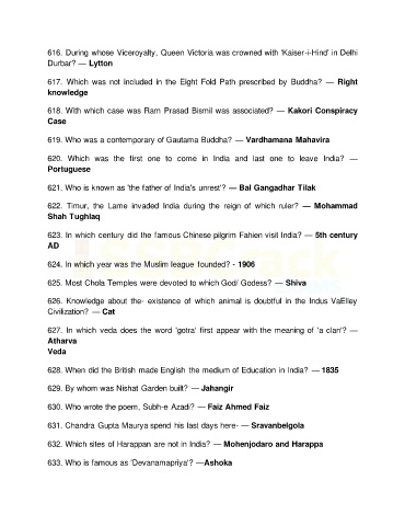 621. Who is known as 'the father of India's unrest'? — Bal Gangadhar Tilak