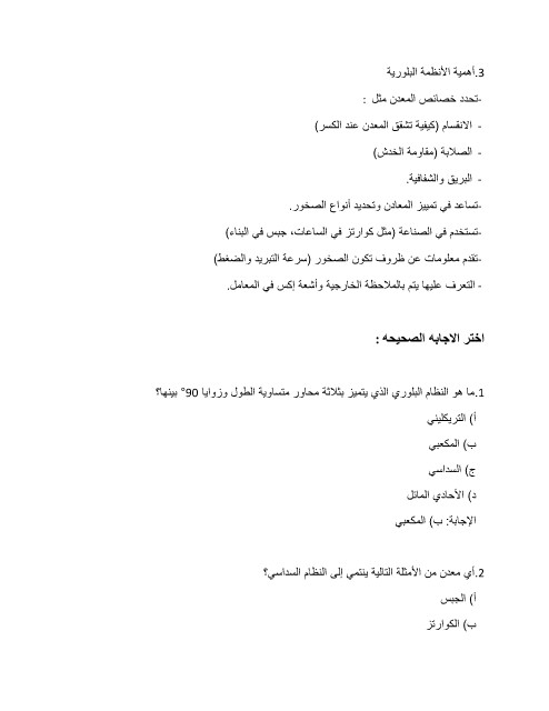 .1ما هو النظام البلوري الذي ٌتمٌز بثلاثة محاور متساوٌة الطول وزواٌا °91بٌنها؟