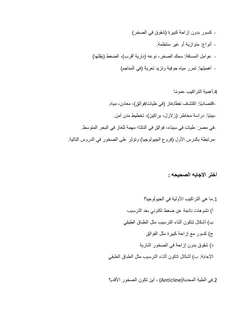 -مرتبطة بالدرس الأول (فروع الجٌولوجٌا) وتؤثر على الصخور فً الدروس التالٌة.