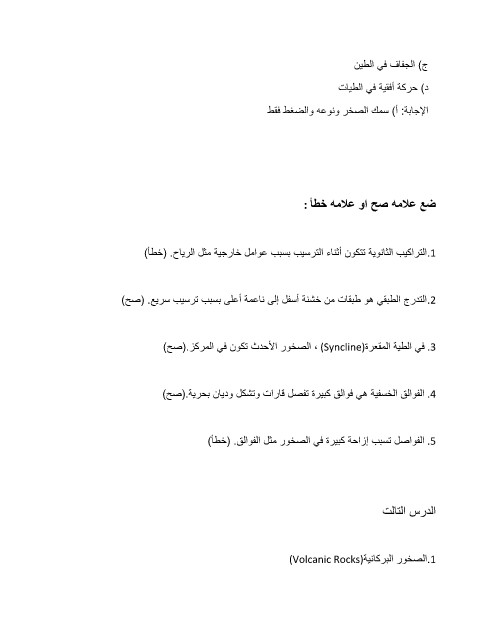 .1التراكٌب الثانوٌة تتكون أثناء الترسٌب بسبب عوامل خارجٌة مثل الرٌاح( .خطأ)
