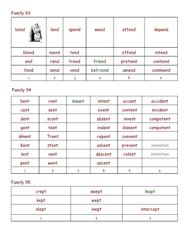 bend lend spend wend attend depend