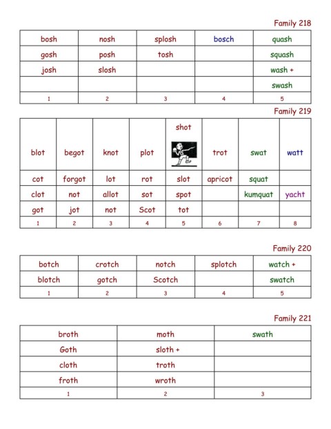 blot begot knot plot trot swat watt