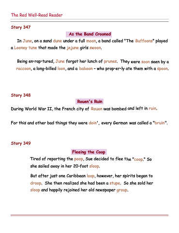 raccoon, a long-billed loon, and a baboon – who prop•er•ly ate them with a spoon.
