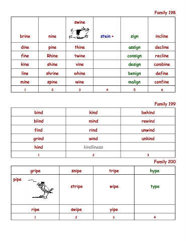 dine pine thine assign decline