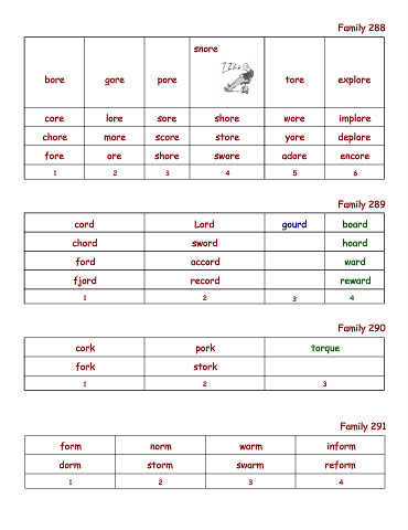 fore ore shore swore adore encore