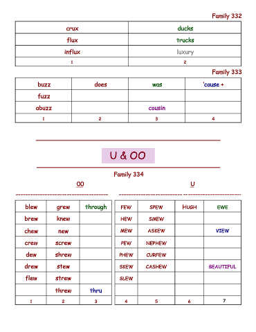 blew           grew         through           FEW          SPEW            HUGH             EWE