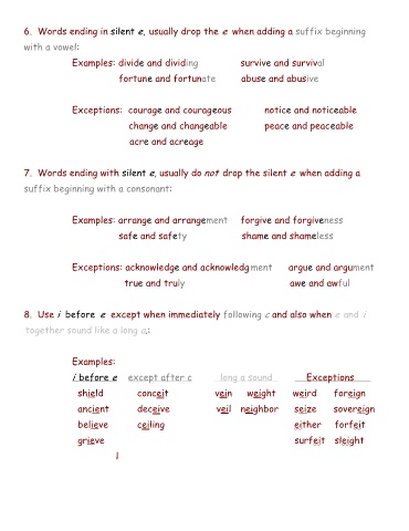 6. Words ending in silent e, usually drop the e  when adding a suffix beginning