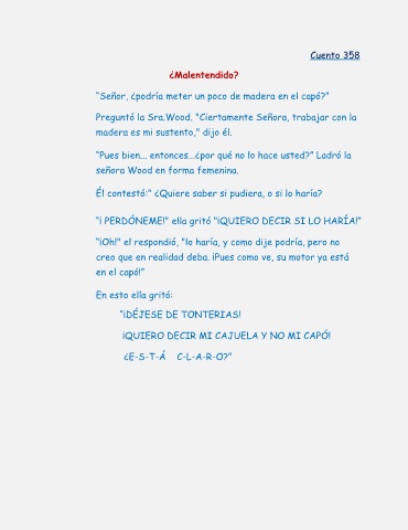 “¡ PERDÓNEME!" ella gritó "¡QUIERO DECIR SI LO HARÍA!”
