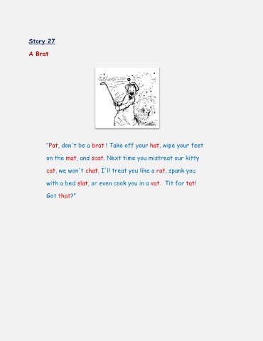 "Pat, don't be a brat ! Take off your hat, wipe your feet