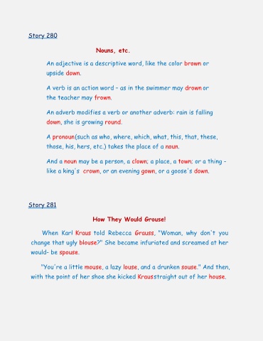 And a noun may be a person, a clown; a place, a town; or a thing -